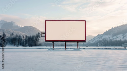 Serene Winter Landscape Featuring a Blank Billboard in a Snowy Setting