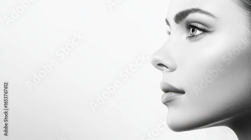 Serene young woman in profile view against plain background