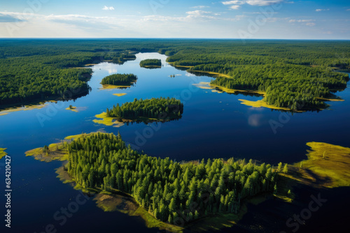 Serenity Unveiled: A Breathtaking Aerial View of the Enchanting Forest Lake, Nestled in Nature's Embrace