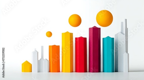 Series of colorful buildings are shown in a row, with each building having a different color. The buildings are arranged in a way that creates a sense of progression
