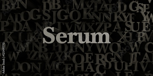 Serum - Stock image of 3D rendered metallic typeset headline illustration. Can be used for an online banner ad or a print postcard.