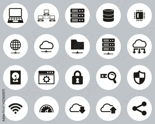 Server & Data Center Icons Black & White Flat Design Circle Set Big