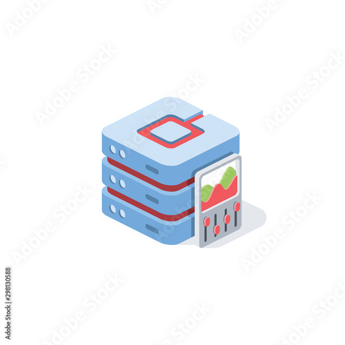 Server hosting analytics settings. Vector 3d isometric, color web icon, new flat style. Creative illustration design, idea for infographics.