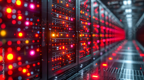 Server room data center corridor with glowing light