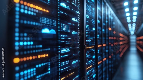 Server room with glowing data displays.