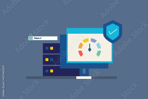 Server Security, Website server security, Website SSL security, SSL certificate, Data encryption technology. Vector illustration background,