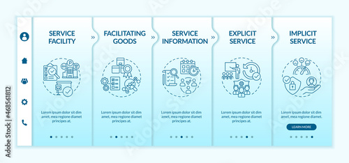 Service characteristics onboarding vector template. Responsive mobile website with icons. Web page walkthrough 5 step screens. Operations management color concept with linear illustrations