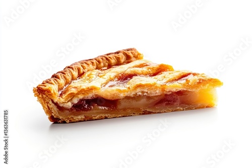 Serving of Delicious Apple Pie Slice on White Background Studio Shot