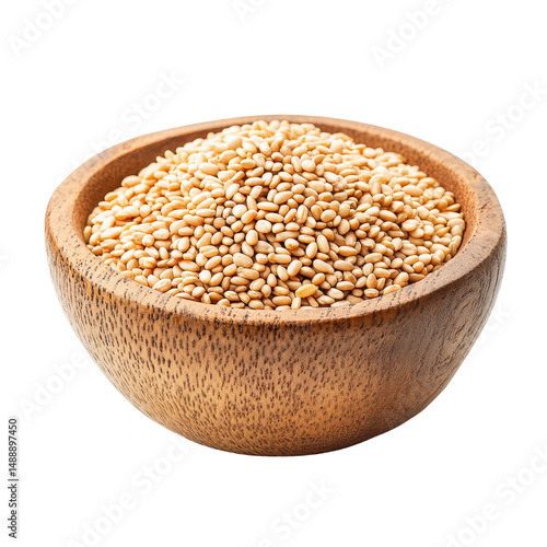 Sesame seeds in wooden bowl on a clean Transparent background showcasing their natural texture, sesame in wood bowl on PNG background