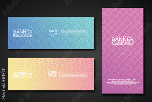 Set banner backgrounds with modern geometric lines textured pattern and colorful dynamic gradation