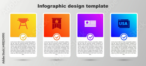 Set Barbecue grill, American flag, and USA on browser. Business infographic template. Vector.