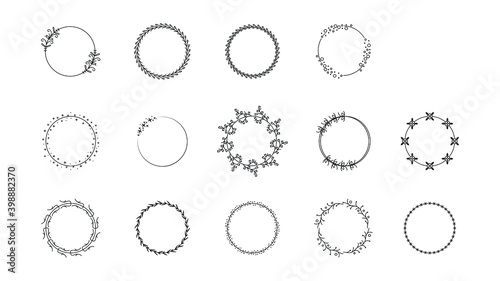Set Black Simple Line Collection Doodle Round Floral Frame Leaves Elements Vector Design Style Sketch Isolated Illustration For Banner