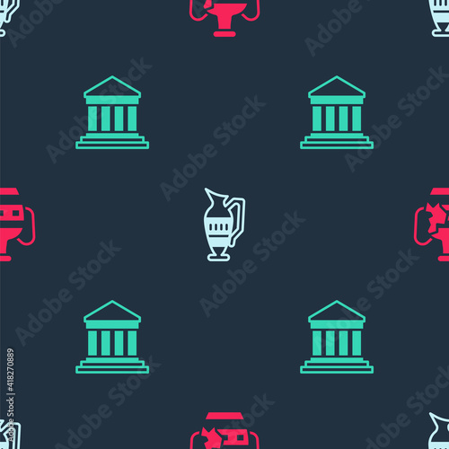 Set Broken amphorae, Ancient and Parthenon on seamless pattern. Vector.