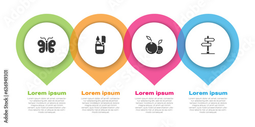 Set Butterfly, Lighter, Fruit and Road traffic sign. Business infographic template. Vector