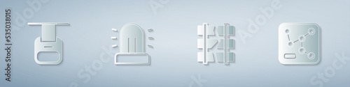 Set Cable car, Flasher siren, Broken or cracked railway and Railway map. Paper art style. Vector