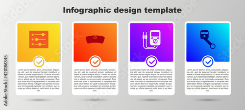 Set Car settings, Windshield, Multimeter and Engine piston. Business infographic template. Vector
