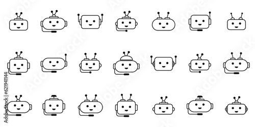 Set chatbot icons. Robot icons and logo in modern flat style. Black artificial intelligence symbol for mobile app and web design on a white background and without background.
