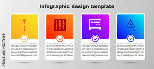 Set Clarinet, Sound mixer controller, Guitar amplifier and Triangle. Business infographic template. Vector