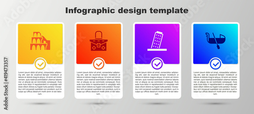 Set Coliseum in Rome, Handbag, Tower Pisa and Gondola. Business infographic template. Vector.