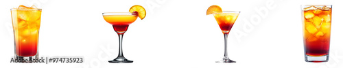 Set, collection of Cocktail glass with a tequila sunrise isolated on transparent background.
