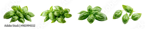 Set, collection of Fresh basil leaves isolated on transparent background.