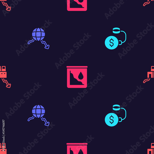 Set Debt ball chained to coin, Global economic crisis, Drop crude oil price and Shutdown of factory on seamless pattern. Vector
