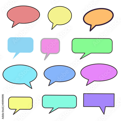 Set different dialog box, frame, speech balloon bubble colorful red violet yellow blue line frame on grey background, Empty blank comment Talk chat speak message illustration pop art design