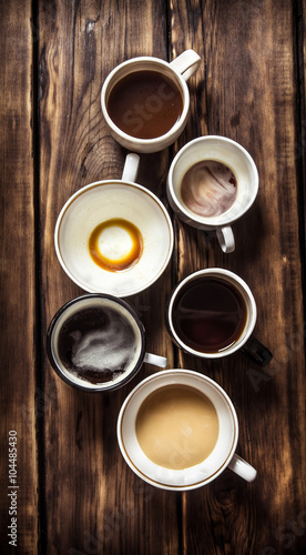Set empty and full cups of coffee.