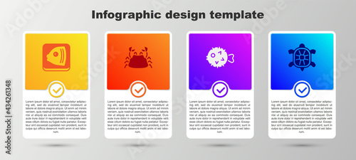Set Fish head, Crab, hedgehog and Turtle. Business infographic template. Vector