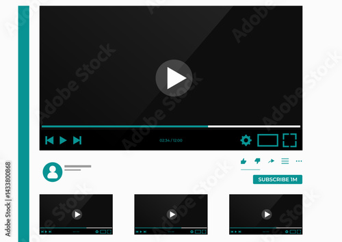 Set Flat Black Media Player Template – Modern Web Video Interface Design