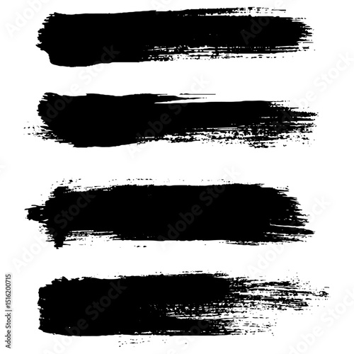 Set four black strokes of paint isolated on a white background. Vector brush, Black ink brush, Grunge stroke, lines, watercolor brush.