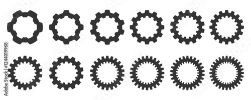 Set gears label and badges line black icon collections. Wheel cogwheel vector.