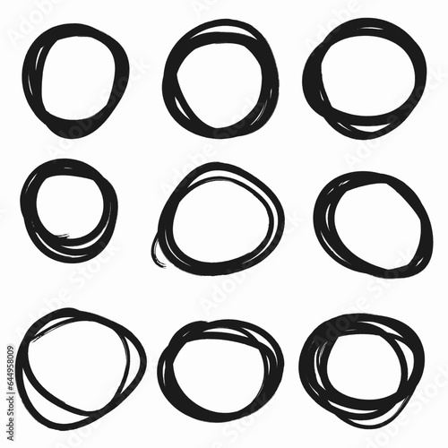 Set hand drawn pencil or marker round circles line sketch set. Circular scribble doodle oval. Highlight circle frames. Vector illustration. White background.