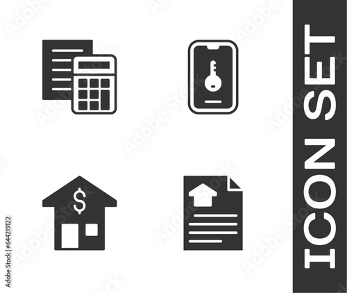 Set House contract, Calculator, with dollar and Online real estate icon. Vector