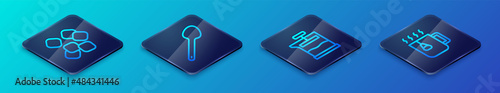 Set Isometric line French press, Sugar cubes, Cup of tea with bag and Teaspoon icon. Vector