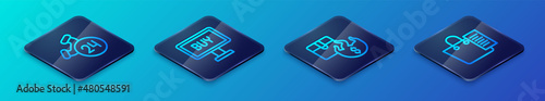 Set Isometric line Hot price, Telephone 24 hours support, Shopping list and Buy button icon. Vector