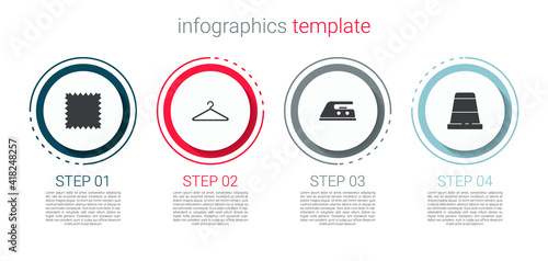 Set Leather, Hanger wardrobe, Electric iron and Thimble for sewing. Business infographic template. Vector.