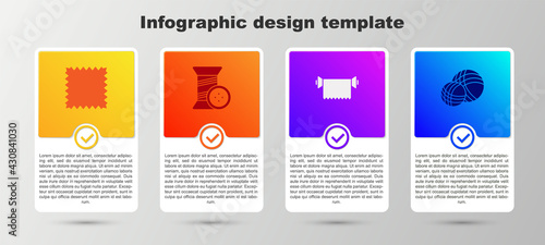 Set Leather, Sewing thread and button, Textile fabric roll and Yarn ball. Business infographic template. Vector
