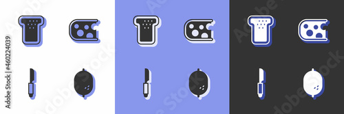 Set Lemon, Bread toast, Knife and Cheese icon. Vector