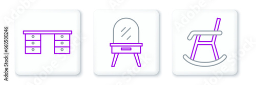 Set line Armchair, Office desk and Dressing table icon. Vector