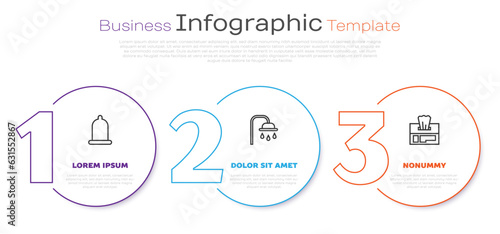 Set line Condom, Shower head and Wet wipe pack. Business infographic template. Vector