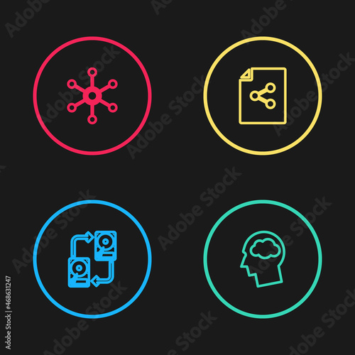 Set line Data exchange with hhd, Head silhouette cloud, Share file and Network icon. Vector