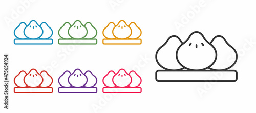 Set line Dumpling icon isolated on white background. Traditional chinese dish. Set icons colorful. Vector