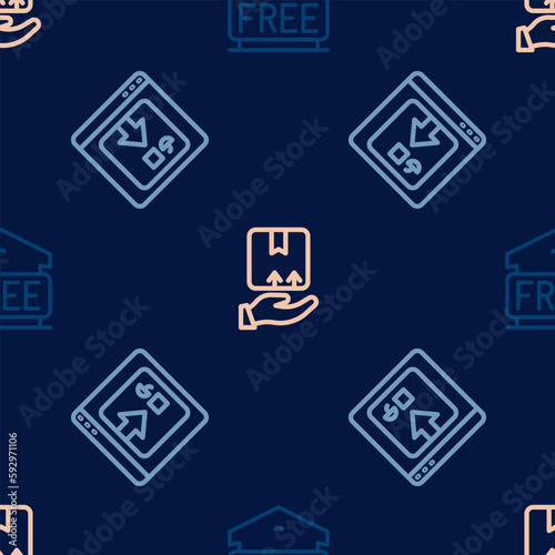 Set line Free storage, Online app delivery tracking and Delivery hand with box on seamless pattern. Vector