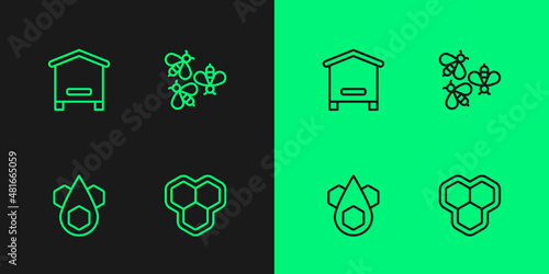 Set line Honeycomb, Hive for bees and Bees icon. Vector
