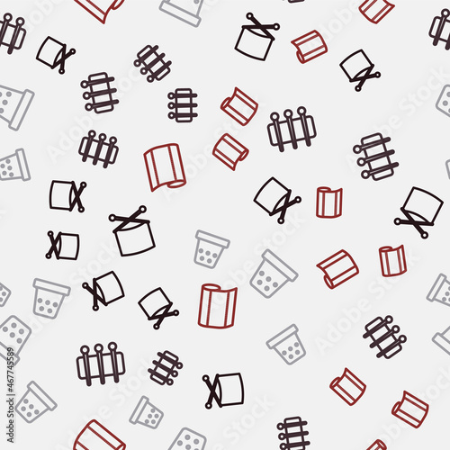 Set line Knitting needles, Needle for sewing, Thimble and Textile fabric roll on seamless pattern. Vector