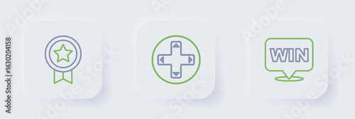 Set line Medal, Game controller or joystick and rating with medal icon. Vector