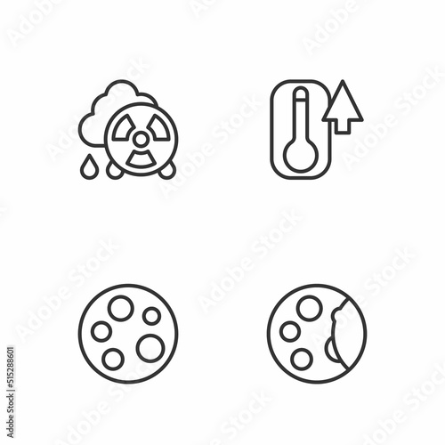 Set line Moon phases, Acid rain radioactive cloud and Thermometer icon. Vector