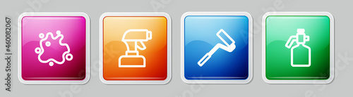 Set line Paint spray, gun, roller brush and . Colorful square button. Vector