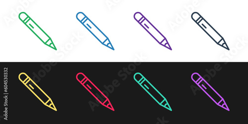 Set line Pencil with eraser icon isolated on black and white background. Drawing and educational tools. School office symbol. Vector